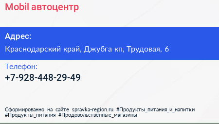 Mobil, автоцентр по адресу Краснодарский край, Джубга кп, Трудовая, 6 в дальнейшем Организация, размещена в следующих категориях: