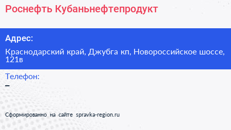 Роснефть-Кубаньнефтепродукт по адресу Краснодарский край, Джубга кп, Новороссийское шоссе, 121в в дальнейшем Организация, размещена в следующих категориях: