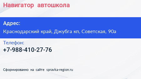 Навигатор+, автошкола по адресу Краснодарский край, Джубга кп, Советская, 90а в дальнейшем Организация, размещена в следующих категориях: