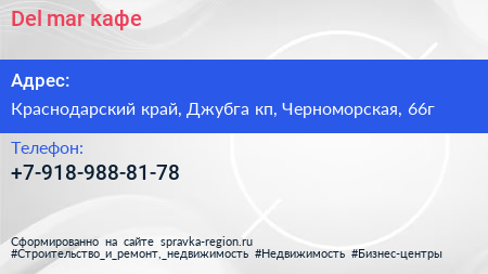 Del mar, кафе по адресу Краснодарский край, Джубга кп, Черноморская, 66г в дальнейшем Организация, размещена в следующих категориях: