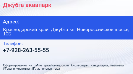 Джубга, аквапарк по адресу Краснодарский край, Джубга кп, Новороссийское шоссе, 10Б в дальнейшем Организация, размещена в следующих категориях: