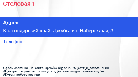 Столовая №1 по адресу Краснодарский край, Джубга кп, Набережная, 3 в дальнейшем Организация, размещена в следующих категориях: