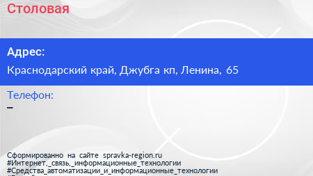 Столовая по адресу Краснодарский край, Джубга кп, Ленина, 65 в дальнейшем Организация, размещена в следующих категориях: