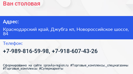 Ван, столовая по адресу Краснодарский край, Джубга кп, Новороссийское шоссе, 84 в дальнейшем Организация, размещена в следующих категориях: