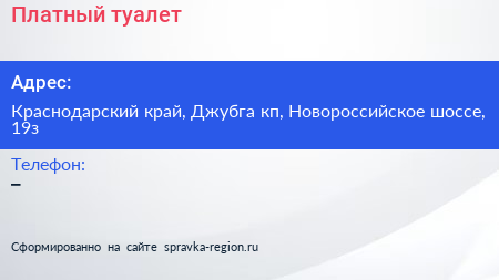 Платный туалет по адресу Краснодарский край, Джубга кп, Новороссийское шоссе, 19з в дальнейшем Организация, размещена в следующих категориях: