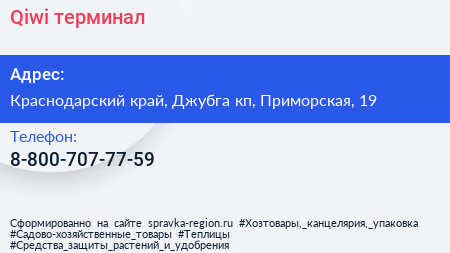 Qiwi, терминал по адресу Краснодарский край, Джубга кп, Приморская, 19 в дальнейшем Организация, размещена в следующих категориях:
