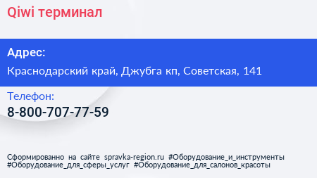 Qiwi, терминал по адресу Краснодарский край, Джубга кп, Советская, 141 в дальнейшем Организация, размещена в следующих категориях: