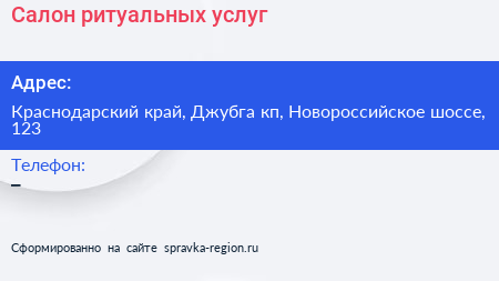 Салон ритуальных услуг по адресу Краснодарский край, Джубга кп, Новороссийское шоссе, 123 в дальнейшем Организация, размещена в следующих категориях: