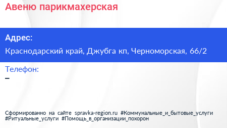 Авеню, парикмахерская по адресу Краснодарский край, Джубга кп, Черноморская, 66/2 в дальнейшем Организация, размещена в следующих категориях: