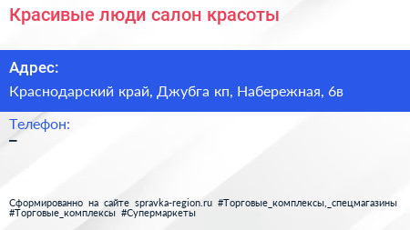 Красивые люди, салон красоты по адресу Краснодарский край, Джубга кп, Набережная, 6в в дальнейшем Организация, размещена в следующих категориях: