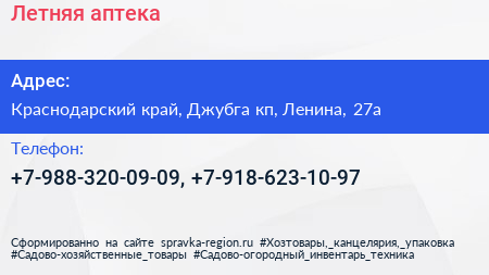 Летняя, аптека по адресу Краснодарский край, Джубга кп, Ленина, 27а в дальнейшем Организация, размещена в следующих категориях: