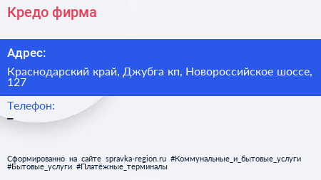 Кредо, фирма по адресу Краснодарский край, Джубга кп, Новороссийское шоссе, 127 в дальнейшем Организация, размещена в следующих категориях: