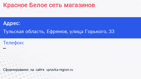 Красное & Белое, сеть магазинов по адресу Тульская область, Ефремов, улица Горького, 33 в дальнейшем Организация, размещена в следующих категориях: