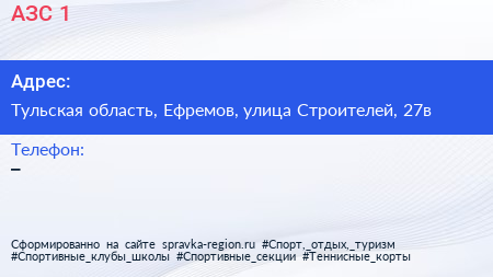 АЗС №1 по адресу Тульская область, Ефремов, улица Строителей, 27в в дальнейшем Организация, размещена в следующих категориях: