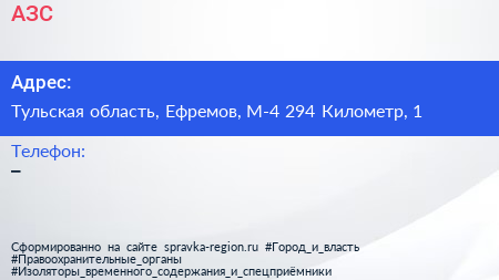 АЗС по адресу Тульская область, Ефремов, М-4 294 Километр, 1 в дальнейшем Организация, размещена в следующих категориях: