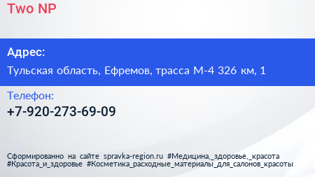 Two NP по адресу Тульская область, Ефремов, трасса М-4 326 км, 1 в дальнейшем Организация, размещена в следующих категориях: