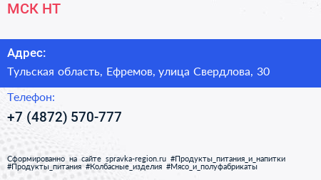 МСК-НТ по адресу Тульская область, Ефремов, улица Свердлова, 30 в дальнейшем Организация, размещена в следующих категориях: