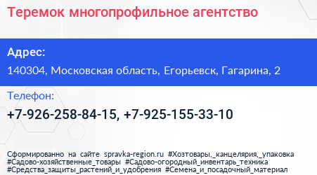 Теремок, многопрофильное агентство по адресу 140304, Московская область, Егорьевск, Гагарина, 2 в дальнейшем Организация, размещена в следующих категориях: