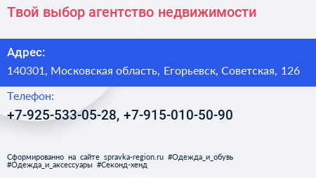 Твой выбор, агентство недвижимости по адресу 140301, Московская область, Егорьевск, Советская, 126 в дальнейшем Организация, размещена в следующих категориях: