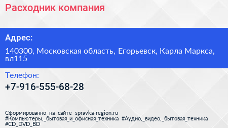 Расходник, компания по адресу 140300, Московская область, Егорьевск, Карла Маркса, вл115 в дальнейшем Организация, размещена в следующих категориях: