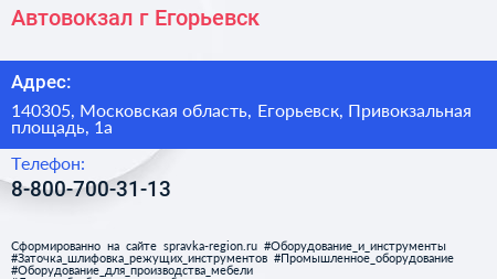 Автовокзал, г. Егорьевск по адресу 140305, Московская область, Егорьевск, Привокзальная площадь, 1а в дальнейшем Организация, размещена в следующих категориях: