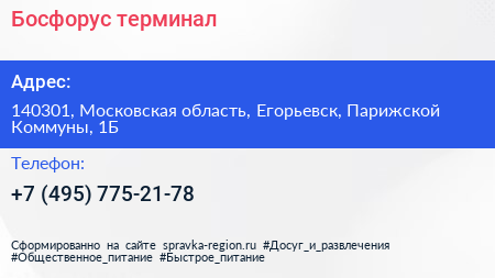 Босфорус терминал по адресу 140301, Московская область, Егорьевск, Парижской Коммуны, 1Б в дальнейшем Организация, размещена в следующих категориях: