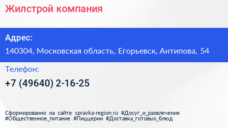 Жилстрой, компания по адресу 140304, Московская область, Егорьевск, Антипова, 54 в дальнейшем Организация, размещена в следующих категориях: