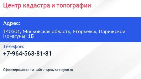 Центр кадастра и топографии по адресу 140301, Московская область, Егорьевск, Парижской Коммуны, 1Б в дальнейшем Организация, размещена в следующих категориях: