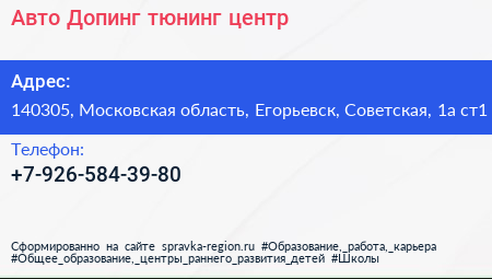Авто Допинг, тюнинг-центр по адресу 140305, Московская область, Егорьевск, Советская, 1а ст1 в дальнейшем Организация, размещена в следующих категориях: