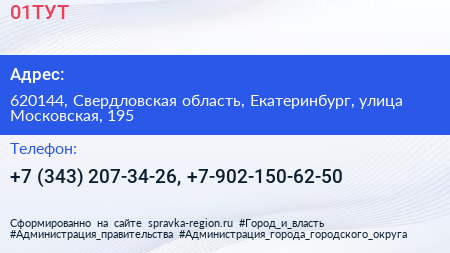 01ТУТ по адресу 620144, Свердловская область, Екатеринбург, улица Московская, 195 в дальнейшем Организация, размещена в следующих категориях: