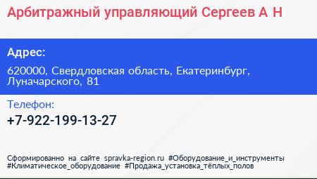 Арбитражный управляющий Сергеев А.Н. по адресу 620000, Свердловская область, Екатеринбург, Луначарского, 81 в дальнейшем Организация, размещена в следующих категориях: