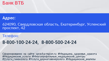 Банк ВТБ по адресу 624090, Свердловская область, Екатеринбург, Успенский проспект, 42 в дальнейшем Организация, размещена в следующих категориях: