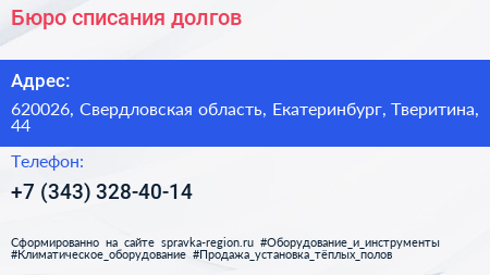 Бюро списания долгов по адресу 620026, Свердловская область, Екатеринбург, Тверитина, 44 в дальнейшем Организация, размещена в следующих категориях: