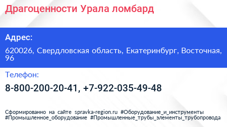 Драгоценности Урала, ломбард по адресу 620026, Свердловская область, Екатеринбург, Восточная, 96 в дальнейшем Организация, размещена в следующих категориях:
