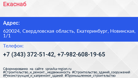 Екаснаб по адресу 620024, Свердловская область, Екатеринбург, Новинская, 1/1 в дальнейшем Организация, размещена в следующих категориях:
