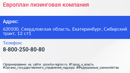 Европлан, лизинговая компания по адресу 620100, Свердловская область, Екатеринбург, Сибирский тракт, 12 ст1 в дальнейшем Организация, размещена в следующих категориях: