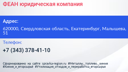 ФЕАН, юридическая компания по адресу 620000, Свердловская область, Екатеринбург, Малышева, 51 в дальнейшем Организация, размещена в следующих категориях: