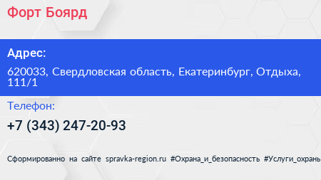 Форт Боярд по адресу 620033, Свердловская область, Екатеринбург, Отдыха, 111/1 в дальнейшем Организация, размещена в следующих категориях: