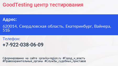 GoodTesting, центр тестирования по адресу 620014, Свердловская область, Екатеринбург, Вайнера, 51Б в дальнейшем Организация, размещена в следующих категориях: