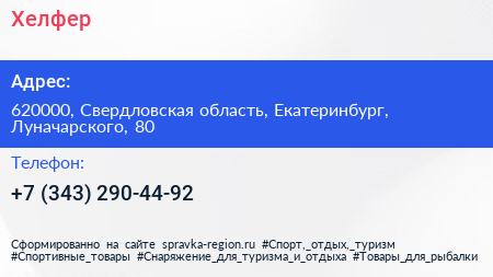 Хелфер по адресу 620000, Свердловская область, Екатеринбург, Луначарского, 80 в дальнейшем Организация, размещена в следующих категориях: