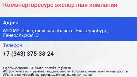 Комэнергоресурс, экспертная компания по адресу 620062, Свердловская область, Екатеринбург, Генеральская, 3 в дальнейшем Организация, размещена в следующих категориях: