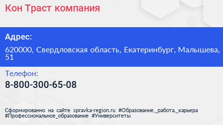 Кон-Траст, компания по адресу 620000, Свердловская область, Екатеринбург, Малышева, 51 в дальнейшем Организация, размещена в следующих категориях: