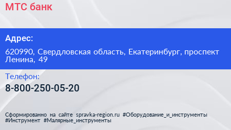 МТС-банк по адресу 620990, Свердловская область, Екатеринбург, проспект Ленина, 49 в дальнейшем Организация, размещена в следующих категориях:
