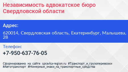 Независимость, адвокатское бюро Свердловской области по адресу 620014, Свердловская область, Екатеринбург, Малышева, 28 в дальнейшем Организация, размещена в следующих категориях: