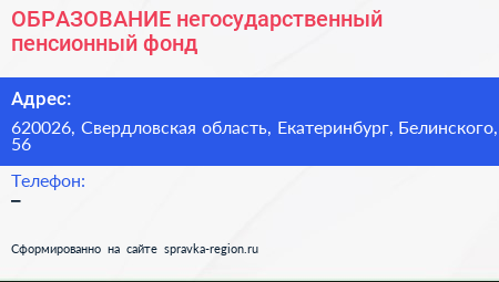 ОБРАЗОВАНИЕ, негосударственный пенсионный фонд по адресу 620026, Свердловская область, Екатеринбург, Белинского, 56 в дальнейшем Организация, размещена в следующих категориях: