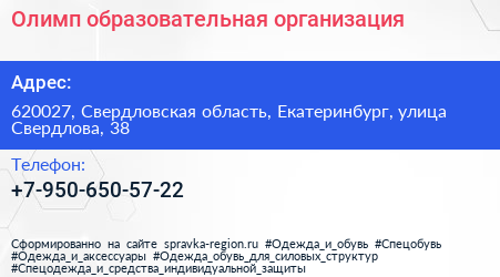 Олимп, образовательная организация по адресу 620027, Свердловская область, Екатеринбург, улица Свердлова, 38 в дальнейшем Организация, размещена в следующих категориях: