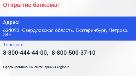Открытие, банкомат по адресу 624092, Свердловская область, Екатеринбург, Петрова, 34Б в дальнейшем Организация, размещена в следующих категориях: