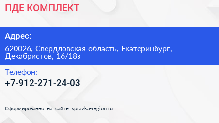 ПДЕ КОМПЛЕКТ по адресу 620026, Свердловская область, Екатеринбург, Декабристов, 16/18з в дальнейшем Организация, размещена в следующих категориях: