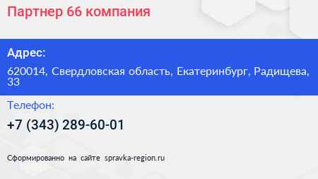Партнер 66, компания по адресу 620014, Свердловская область, Екатеринбург, Радищева, 33 в дальнейшем Организация, размещена в следующих категориях: