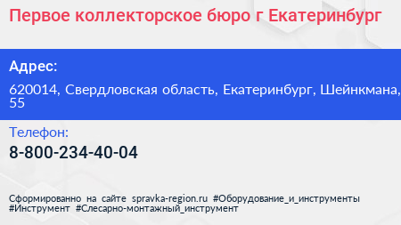 Первое коллекторское бюро, г. Екатеринбург по адресу 620014, Свердловская область, Екатеринбург, Шейнкмана, 55 в дальнейшем Организация, размещена в следующих категориях: